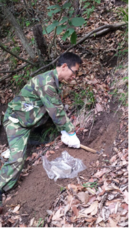 雖未至伏月,但艷陽(yáng)高照的五月天仍是酷熱難當(dāng),加上工作區(qū)相對(duì)高差普遍在400m左右,地勢(shì)陡峭,灌木叢生,給野外工作帶來(lái)了較大困難。但是沒(méi)有一位同志退縮,大家依舊不畏辛苦地穿越在高山密林之中,攻堅(jiān)克難,保證質(zhì)量地完成了每天的任務(wù)。化探組組長(zhǎng)趙渭河每天保持一副“樂(lè)呵呵”的面容,主動(dòng)要求跑最長(zhǎng)的路線,回基地后還堅(jiān)持負(fù)責(zé)樣品的清點(diǎn)與記錄,深深感染了我們,讓我們年輕技術(shù)員甚為欽佩,是我們學(xué)習(xí)的榜樣。