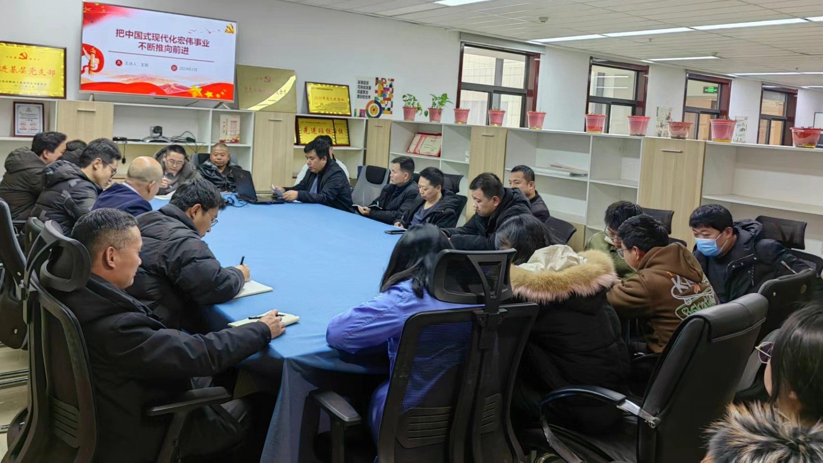 律回春暉漸,萬象始更新。為確保2024年度物化探院工作有序開展,職工收心歸位、凝心聚力。于2月26日召開2024年工作動員大會暨黨課宣講會。公司副總經(jīng)理冉軍林、副總經(jīng)理、總工程師王朋到會指導(dǎo),全院職工參加會議。