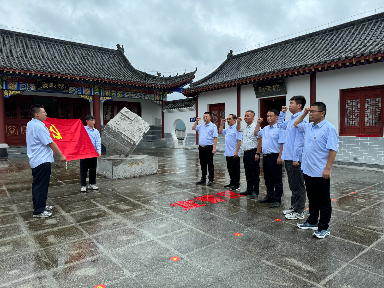 參觀結(jié)束后,全體黨員在水工環(huán)院黨支部書記余鋼的領誓下,面對鮮紅的黨旗,重溫入黨誓詞,接受了一場深刻的黨性教育和警示教育。