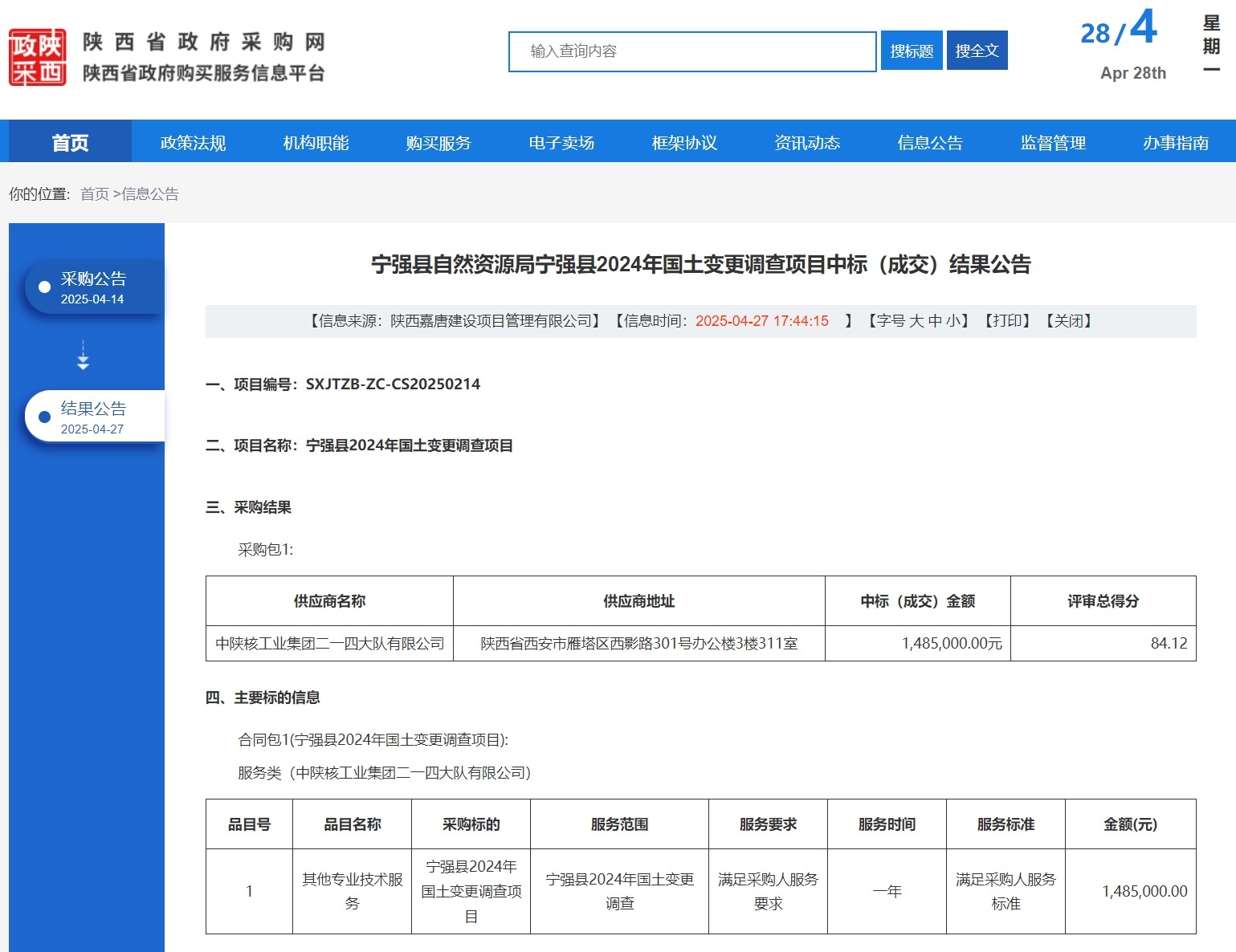 427,公司物化探院成功中標《寧強縣2024年國土變更調查項目》,這一喜訊標志著公司在國土調查領域的專業技術實力獲認可,也將為寧強縣自然資源管理工作增添新動能。