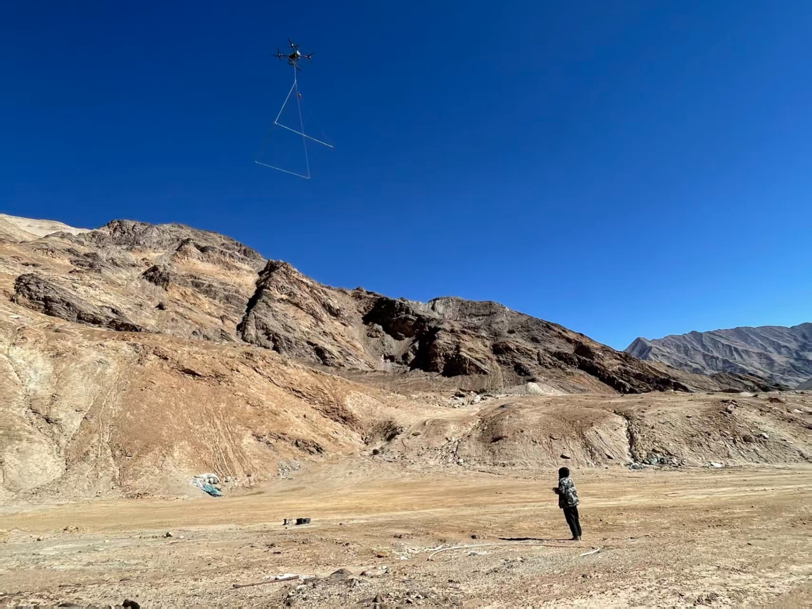 航空物探勘查是通過航空飛行器搭載專業物探儀器,對地下地質構造、礦產資源分布進行高精度探測的技術手段,也是二一四隊的核心業務優勢之一。為獲取精準數據,團隊需操控無人機在指定區域開展低空飛行探測,飛行過程中既要應對強氣流、能見度低等復雜氣象條件,還要提防地面凸起的山體、高壓線路等潛在危險。