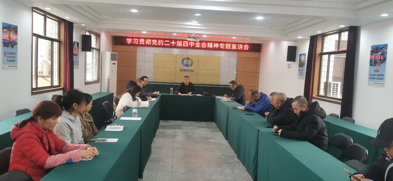 為推動黨的二十屆四中全會精神在基層落地生根、深入人心,12 月3日,公司黨委委員、紀委書記楊昭赴城固基地開展黨的二十屆四中全會精神專題宣講。宣講會由紀委副書記、紀檢部部長華崢主持,城固基地綜合辦、二一四隊分公司全體黨員、干部及職工代表參加會議。