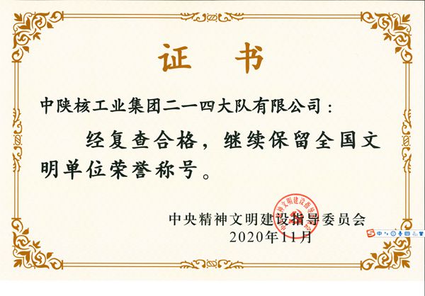 近日,中央精神文明建設(shè)指導(dǎo)委員會(huì)印發(fā)《關(guān)于復(fù)查確認(rèn)繼續(xù)保留榮譽(yù)稱號(hào)的全國文明城市、文明村鎮(zhèn)、文明單位的通報(bào)》(文明委[2020]9號(hào)),公司經(jīng)中央文明委復(fù)查確認(rèn)繼續(xù)保留“全國文明單位”榮譽(yù)稱號(hào)并頒發(fā)證書。