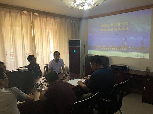首先,薛冽和張塞前往克拉瑪依項目部進行座談,技術負責張羽就項目前期工作所取得的成果及下步工作安排進行了簡要匯報,楊波對成果及下步工作設想進行了補充。匯報結束后,薛冽和張塞與會人員展開了討論,對項目所取得的成果給予了充分肯定。同時楊波提出,油田特礦研究中心提供的三維地震成果與項目鉆探驗證成果具有很好的對應性,希望特礦中心進一步將地震反演資料成果運用在克拉瑪依項目中,以便更好的指導項目的下步工作。