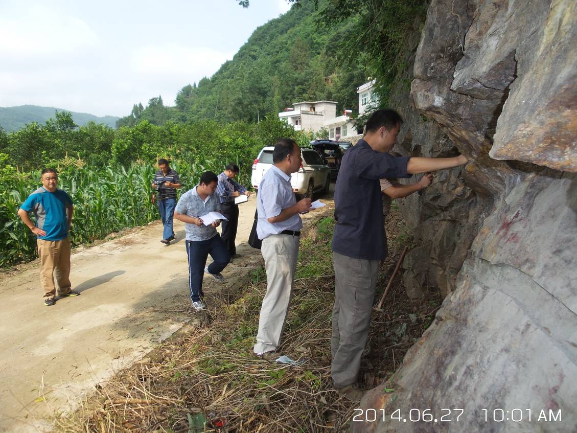 2014年6月26-27日,省基金辦專家張銀龍、張啟、王善勛、李耕(中陜核集團副總工程師)、宋工(安康市國土局工程師)一行,在214大隊副大隊長金衛(wèi)平、214大隊副總工程師兼地調(diào)院院長王義忠陪同下,對214大隊地調(diào)院承擔的“陜西省紫陽縣漢王城地區(qū)金多金屬礦普查” 項目進行了野外驗收。