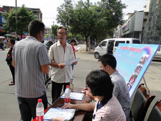 “8·29前夕,按照宣傳活動策劃方案,大隊在來往人流量密集、位置顯眼的地方懸掛10多米宣傳標語橫幅2條,吸引了眾多路人關注,營造了良好的宣傳氛圍。“8·29”當日,立足大隊縣域區位的良好優勢,在隊部東門的繁華路段設立了咨詢臺1個,制作展出了宣傳板2塊。并抽調專業測繪人員數名,上街主動開展宣傳,大家頂烈日、冒酷暑,現場接待前來咨詢的廣大群眾,發放宣傳彩頁近千份,重點宣傳基礎測繪對服務社會、服務民生的重要作用。此外,大隊還以“保障民生、服務社會,測繪就在您身邊。