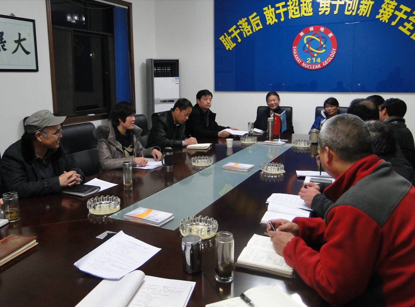 16下午,大隊召開黨政工聯席擴大會議,傳達學習1226陜核集團公司2014年經濟工作會精神,并對大隊全年經營目標任務認真疏理,細化分解,具體安排。會議由副大隊長皮紅芳主持,大隊領導班子成員、各經營單位、科室部門負責人參加。