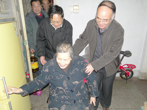 當(dāng)?shù)弥诵蔹h員萬忠誨因車禍致殘長(zhǎng)年臥床,其妻子腿腳不便兩人都靠輪椅活動(dòng)的情況后,黨委書記趙建輝緊握老人的手囑咐他們要注意保暖和安全,平時(shí)有困難要主動(dòng)跟大隊(duì)黨委聯(lián)系,萬忠誨的家人對(duì)組織上的關(guān)心表示感謝。